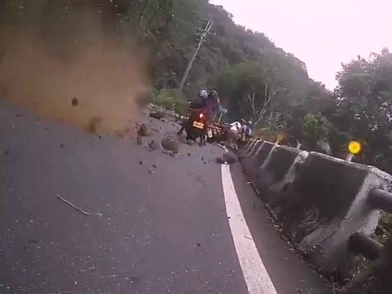 Σε βίντεο που δόθηκε στη δημοσιότητα από την ώρα του σεισμού, μοτοσικλετιστές αιφνιδιάζονται από κατολίσθηση, με αποτέλεσμα να κινδυνέψει η ζωή τους από πέτρες και ξεριζωμένα δέντρα.