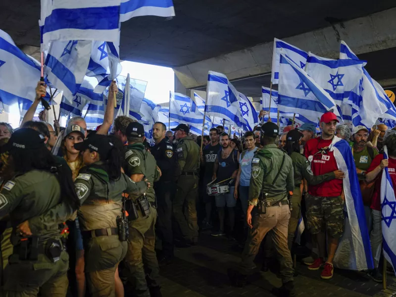 «Δεν μπορώ να δεχτώ ότι ο άνθρωπος που έχει τρεις δίκες στην πλάτη είναι επιφορτισμένος με τις υποθέσεις της χώρας. Η χώρα μας έχει απαχθεί από μία παράνομη κυβέρνηση», λέει ένας από τους συγκεντρωμένους. «Μόλις τελειώσει ο πόλεμος, θα κατεβούμε στους δρόμους για να απαιτήσουμε την παραίτηση του Μπίμπι. Μας απήγαγαν τα παιδιά μας και είναι δική του ευθύνη», δηλώνει ένας άλλος. «Οι εγκληματίες του φιάσκο του 2023 πρέπει να δικαστούν», γράφει το πλακάτ δίπλα του.