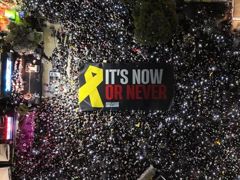 Δεκάδες χιλιάδες άνθρωποι διαδήλωσαν στο Τελ Αβίβ το βράδυ του Σαββάτου υπέρ της συμφωνίας κατάπαυσης του πυρός και απελευθέρωσης των ομήρων, καθώς η πρόταση των ΗΠΑ για τον τερματισμό του πολέμου στη Γάζα φαίνεται να προχωράει, όπως σημειώνουν οι Times of Israel. «Τώρα ή ποτέ», έγραφε πάνω σε ένα τεράστιο πανό που κρατούσε πλήθος κόσμου, με τον ίδιο τον πρόεδρο των ΗΠΑ Ντόναλντ Τραμπ να τονίζει το μήνυμα δημοσιεύοντας φωτογραφίες από το πανό.
