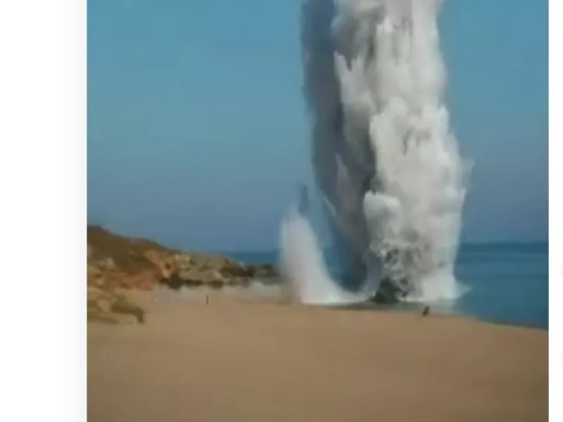 Τηλεοπτικά πλάνα δείχνουν την έκρηξη να γίνεται στη θάλασσα λίγα μόλις μέτρα από την παραλία και καπνό να υψώνεται στον ουρανό.