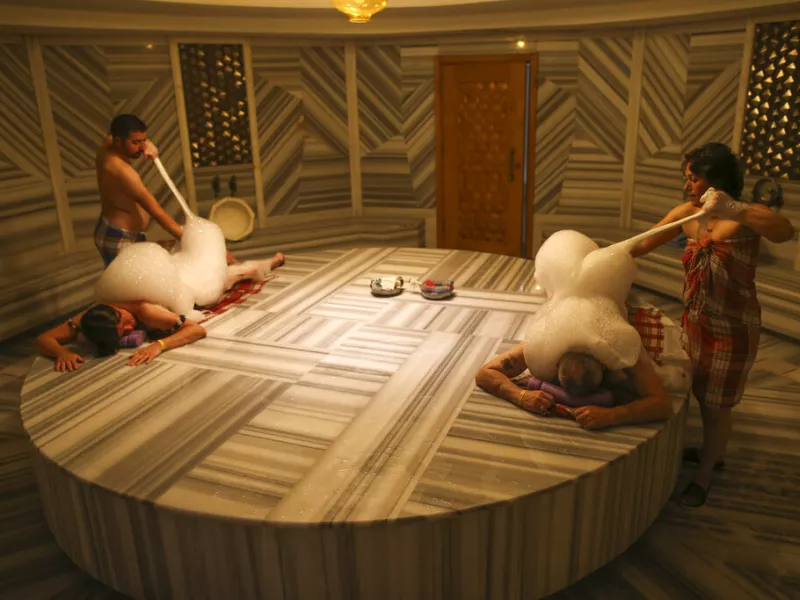 Με ένα μικρό μπολ, ο λουτράρης ρίχνει νερό σε μαλλιά, πρόσωπο και σώμα. Παρά το όνομα, το τουρκικό χαμάμ δεν έχει μπανιέρες. «Πριν το Ισλάμ», εξηγεί ο Ιγντιρλιγκίλ, «οι Τούρκοι είχαν σαμανιστικές πεποιθήσεις και θεωρούσαν το νερό ιερό. Αν λουστείς μέσα στο νερό, το κάνεις βρώμικο. Στο τουρκικό Ισλάμ, αν το νερό αγγίξει το σώμα, τότε ούτε το νερό ούτε το σώμα θεωρούνται πια καθαρά».