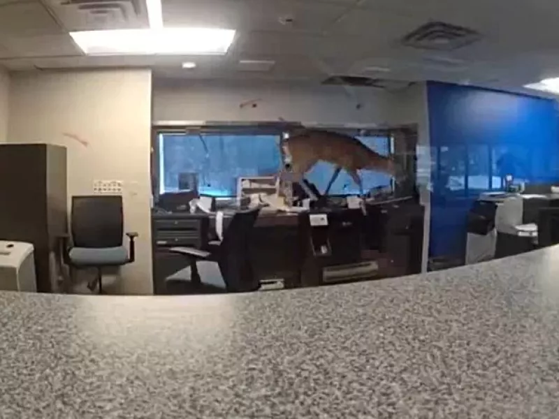 Άγνωστο πώς, ένα ελάφι κατάφερε και μπήκε στο εσωτερικό τράπεζας στη Νέα Υόρκη, όπου, προφανώς τρομαγμένο, άρχισε να πέφτει πάνω σε γραφεία και άλλα αντικείμενα που βρίσκονταν στον χώρο.