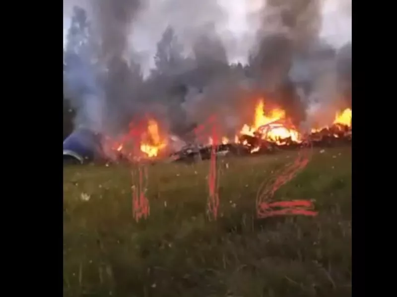 Βίντεο, των οποίων η γνησιότητα δεν μπορεί να επιβεβαιωθεί επί του παρόντος, μεταδόθηκαν σε αρκετά κανάλια στο Telegram που ισχυρίζονται ότι συνδέονται με τη Βάγκνερ, και δείχνουν συντρίμμια να φλέγονται σε ένα χωράφι ή στιγμιότυπο πτώσης αεροσκάφους.