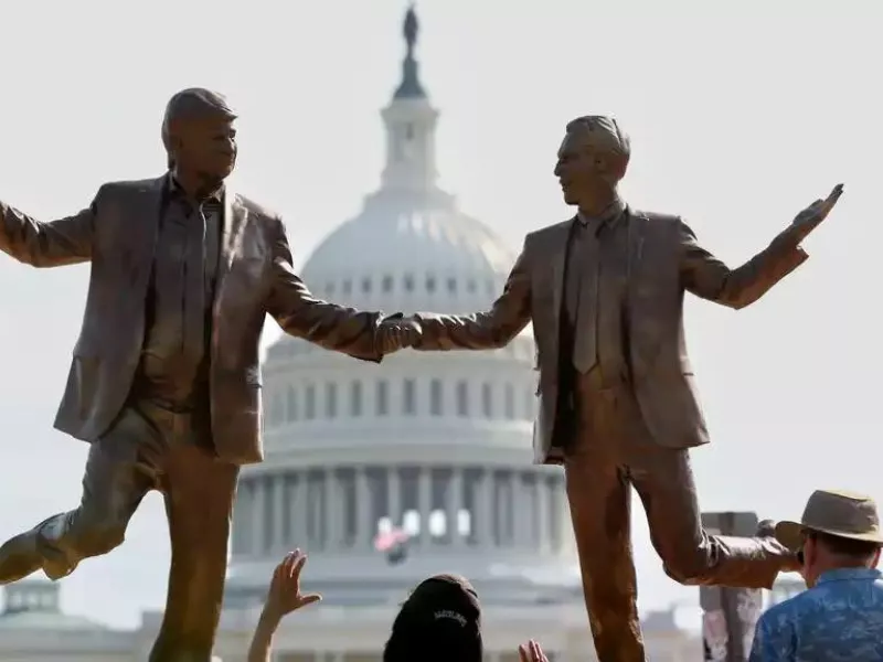 Τον γύρο του διαδικτύου κάνουν τις τελευταίες ώρες οι φωτογραφίες από ένα άγαλμα της «φιλίας» Τραμπ - Επστάιν που εμφανίστηκε στην Ουάσιγκτον.