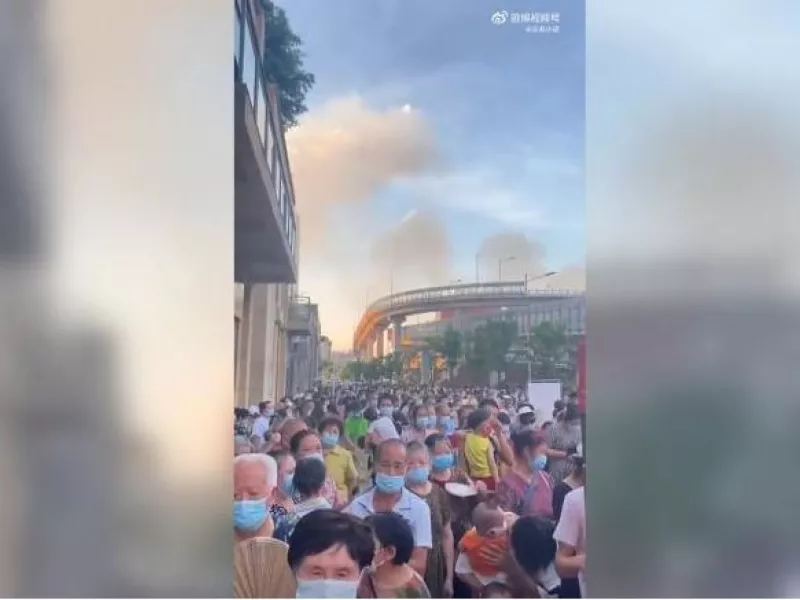 Βίντεο που κυκλοφόρησε δείχνει έναν δρόμο γεμάτο με εκατοντάδες ανθρώπους που προφανώς περιμένουν στην ουρά για τεστ Covid, οι περισσότεροι φορούν μάσκες προσώπου και κάποιοι ανεμίζουν τις βεντάλιες για να ανακουφίσουν τη ζέστη.
