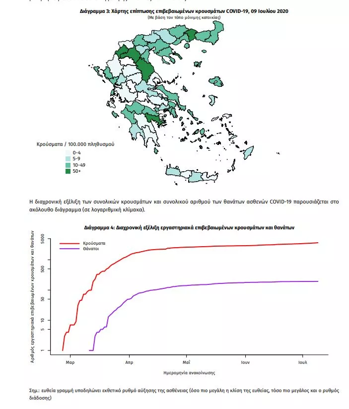 Τα στοιχεία που παρουσιάζονται αφορούν περιστατικά από την επιδημιολογική επιτήρηση της νόσου από το νέο κορωνοϊό (COVID19), με βάση τα δεδομένα που έχουν δηλωθεί στον ΕΟΔΥ και καταγραφεί μέχρι τις 09 Ιουλίου 2020 (ώρα 15:00).
