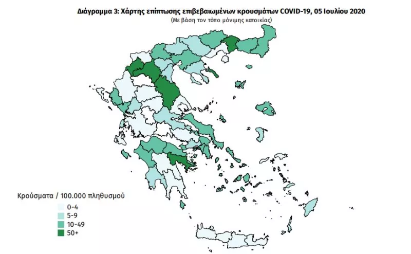 Από τα εννέα νέα κρούσματα, τα 7 εντοπίστηκαν κατά τους ελέγχους που διενεργήθηκαν στις πύλες εισόδου της χώρας. Ένα εντοπίστηκε στην Περιφερειακή Ενότητα Ξάνθης και ένα στην Περιφερειακή Ενότητα Καστοριάς.