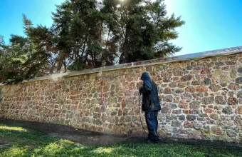 Καθαρίστηκαν 300 τ.μ. πέτρινης επιφάνειας, και τοποθετήθηκε ειδικό φιλμ για την αποτροπή μελλοντικού βανδαλισμού.